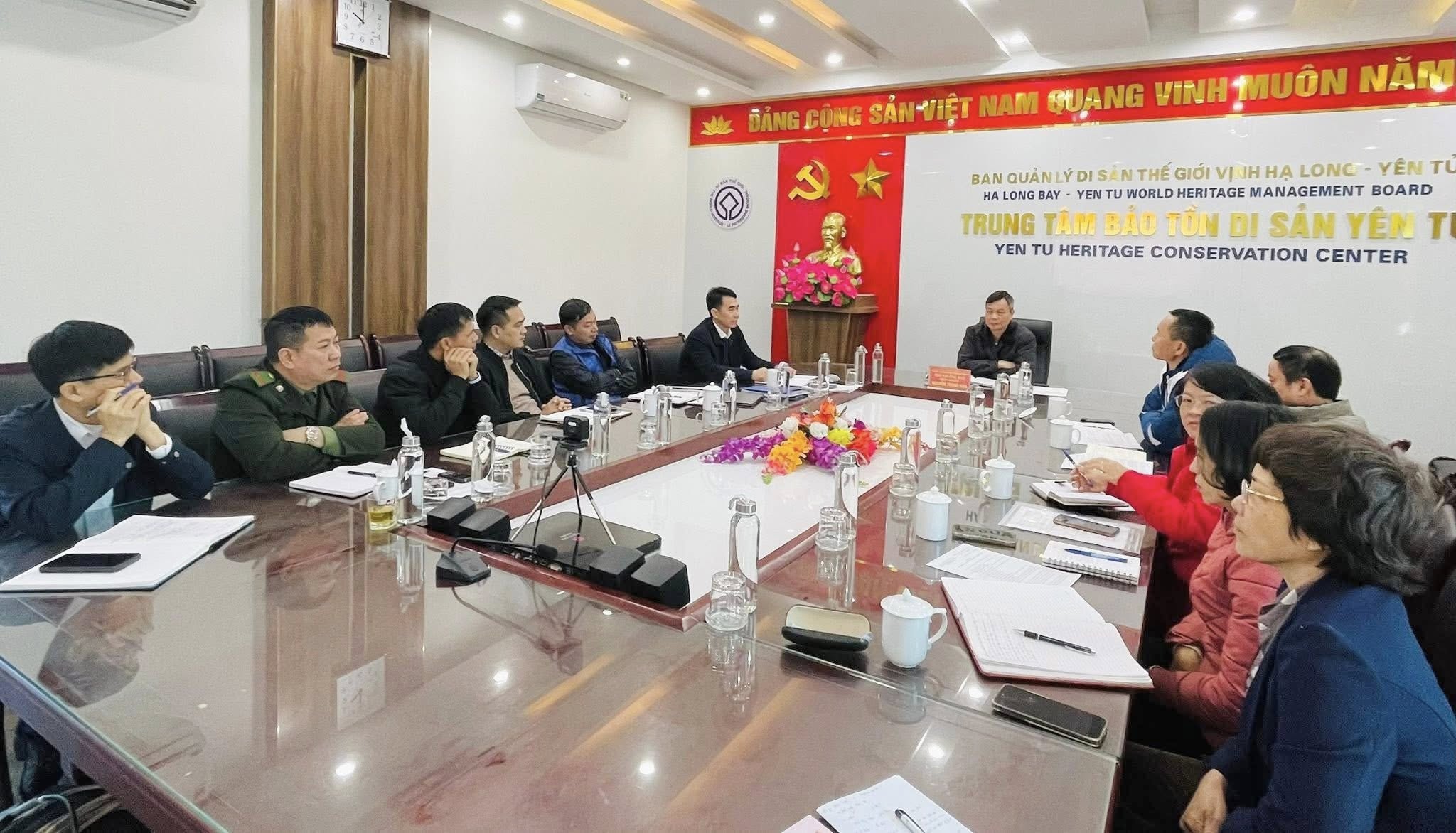 ĐỒNG CHÍ NGUYỄN TRUNG HẬU, PHÓ TRƯỞNG BAN QUẢN LÝ DI SẢN THẾ GIỚI VỊNH HẠ LONG – YÊN TỬ LÀM VIỆC VỚI TRUNG TÂM BẢO TỒN DI SẢN YÊN TỬ