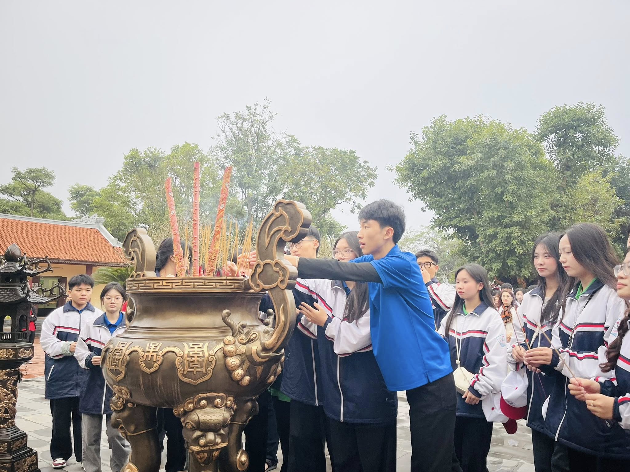 Giữa không gian trầm mặc của đền An Sinh, nơi hội tụ linh khí của quê gốc nhà Trần, lịch sử hiện ra không ồn ào, mà sâu lắng. Dưới mái đền, hàng cây, những hạt mưa rơi như nhịp thời gian chảy ngược, đưa các bạn học sinh chạm gần hơn tới một triều đại từng làm nên hào khí dân tộc.